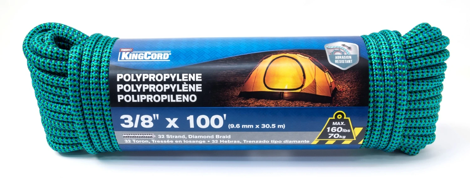 KingCord 32-Strand Diamond Braid Polypropylene Rope is designed for maximum strength and durability. It’s made with a polypropylene jacket covering a synthetic core. The jacket has double the strands versus standard diamond braid ropes giving it maximum abrasion resistance. Common uses include, securing equipment and tarps, making a shelter, using as a rescue line, lifting objects with a pulley and tying down loads and using while camping or boating. Do not use for overhead lifting. (5-6-1256)