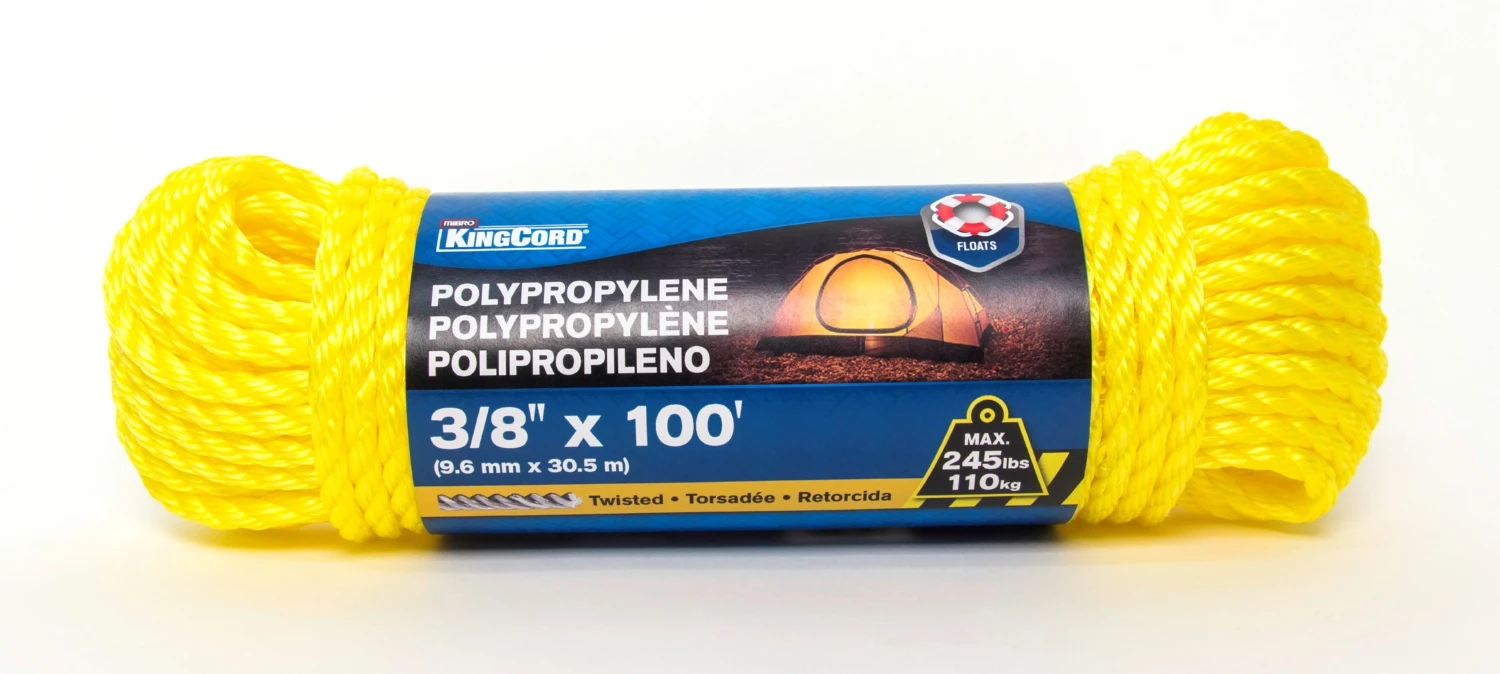 Twisted Polypropylene rope is good for outdoor recreation and general purpose use. It’s lightweight and floats, so it’s a good choice for pools and other water activities. It’s stronger than hollow core and will hold knots well, so Twisted Poly is a good, economical option for tie-down needs both indoors and out. Rot and mildew resistant. Store wet or dry. For extended life, store away from direct sunlight. Do not use for overhead lifting. Never exceed the Safe Working Load (SWL). (6-6-2948)