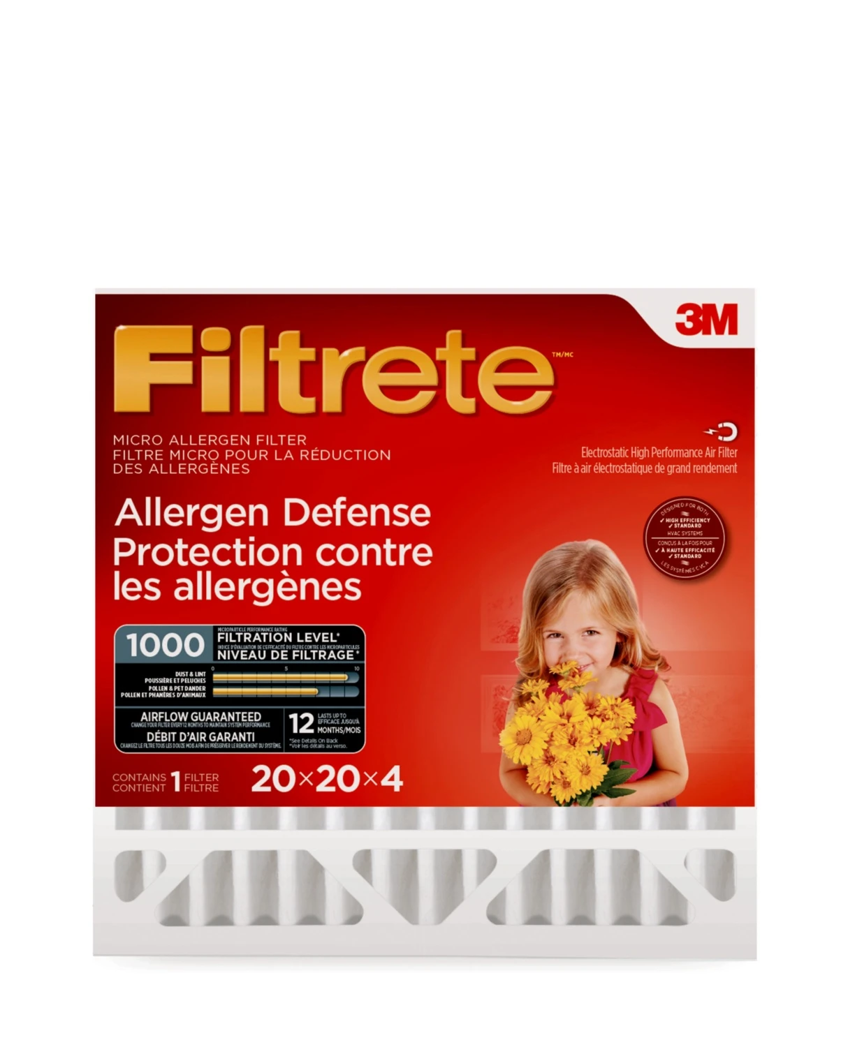 3M FILTRETE ALLERGEN DEFENSE MICRO ALLERGEN DEEP PLEA FILTER, MICROPARTICLE PERFORMANCE RATING 1000, 20 In X 20 In X 4 In