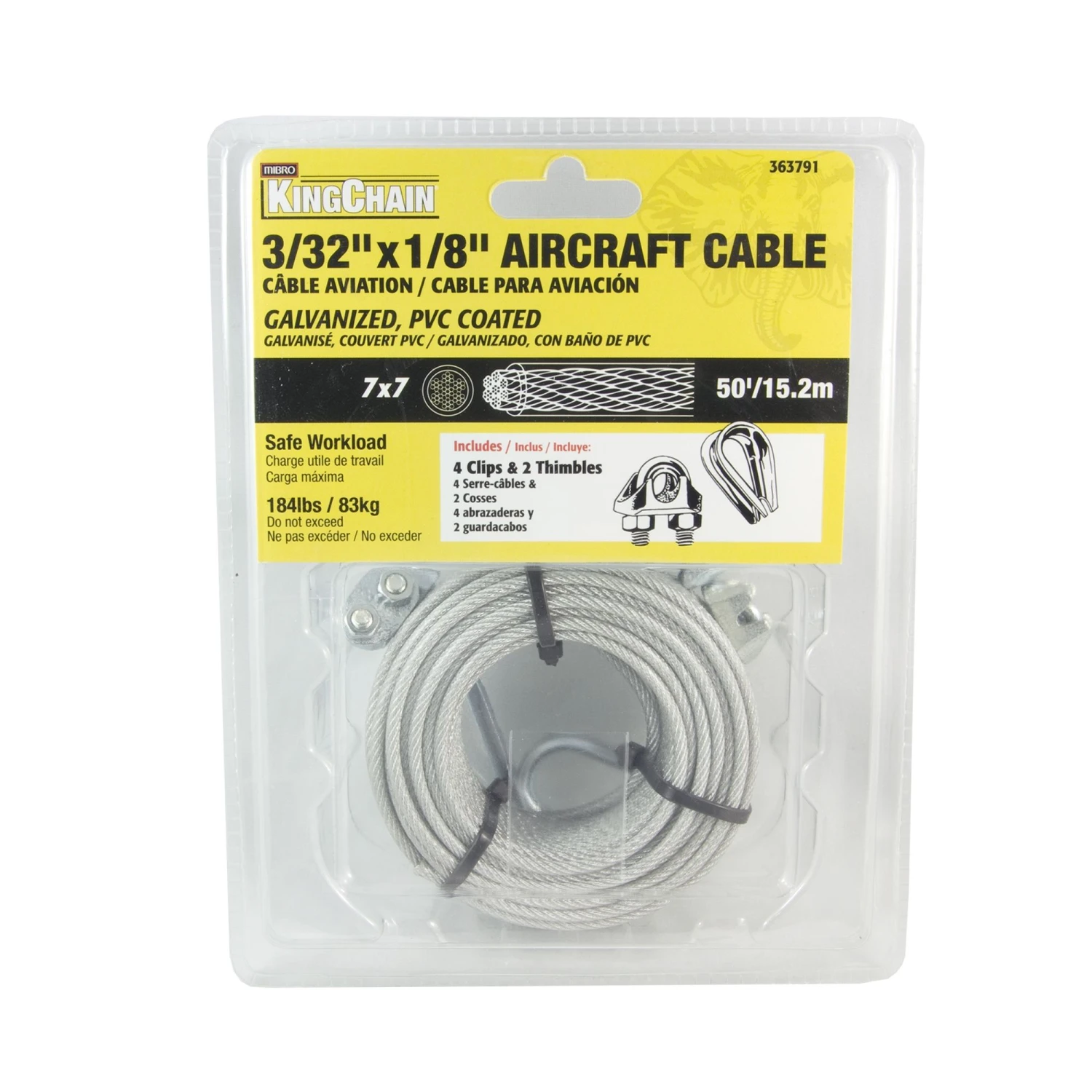 Contents: 50′ cable, 4 wire rope clips, 2 wire rope thimbles_x000d_