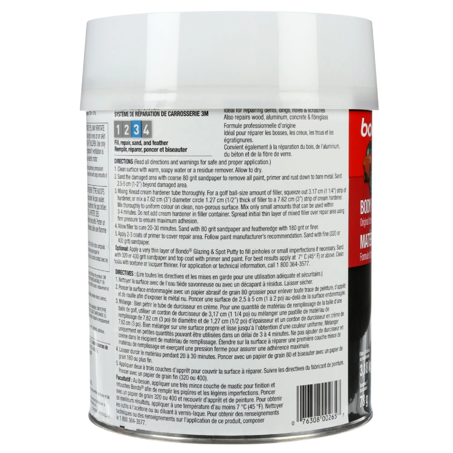Bondo® Body Filler is specially designed to be non-shrinking and permanently durable, making it ideal for a wide variety of automotive, home, and hobby projects. Easy application and quick dry time allow for same-day completion of your toughest projects!