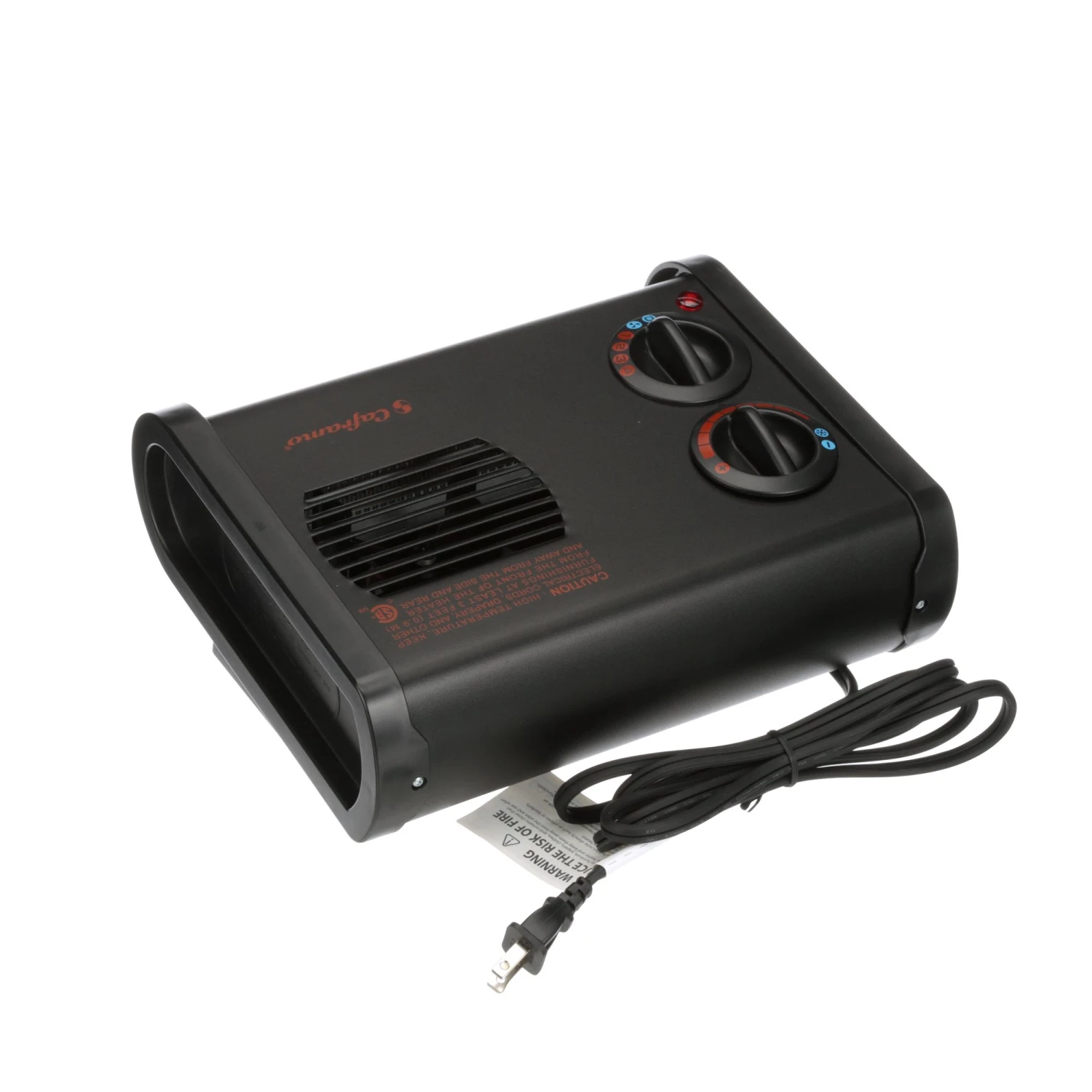 - Rugged electric heater with built-in adjustable thermostat helps keep the room warm on the chilliest of nights