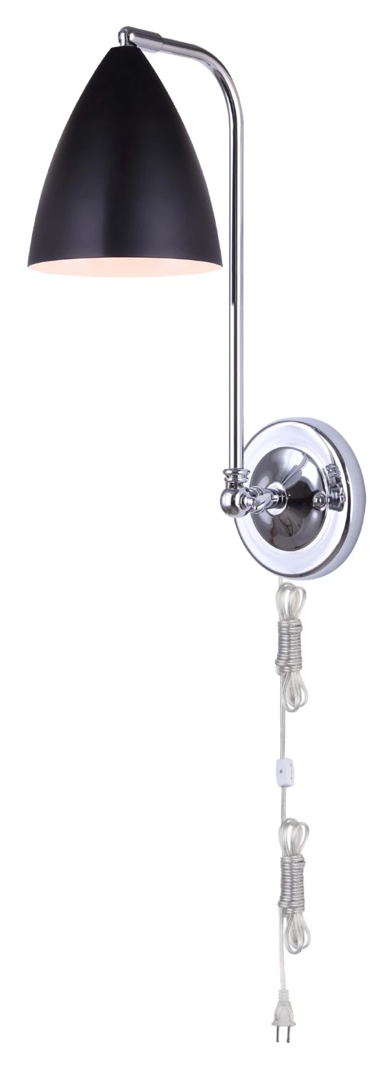 Canarm Canon 1-Bulb Vanity Wall Light- Chrome And Black Metal