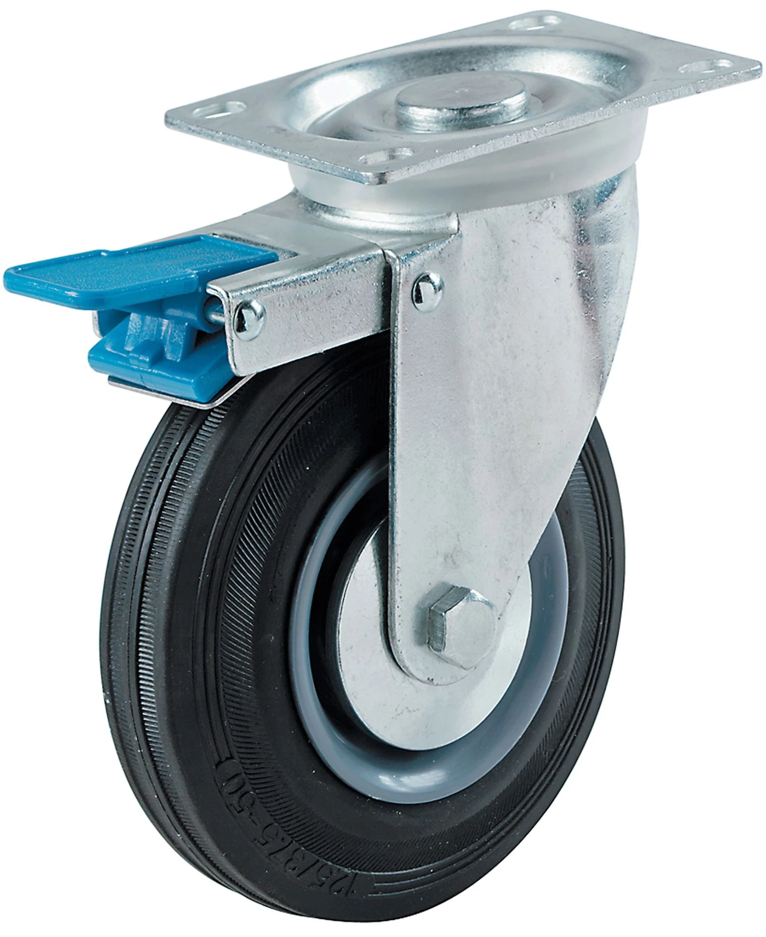 CASTER 3″ SWIVEL BRAKE SEMI-ELASTIC WHEEL PRIMARILY USED IN ENVIRONMENTS WHERE NOISE REDUCTION, DURABILITY AND A SUPERIOR ROLLING QUALITY ARE REQUIRED