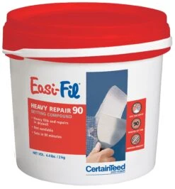 CertainTeed Heavy Repair Setting compounds are recommended for heavy fills or when exceptional bond is necessary. Once dry the product is not sandable. It is specially formulated to harden with very little shrinkage. This enables gypsum wallboard joints to be taped and first coated with High Density, and once set, the joints can be finished with All–Purpose Compound — all in the same day.