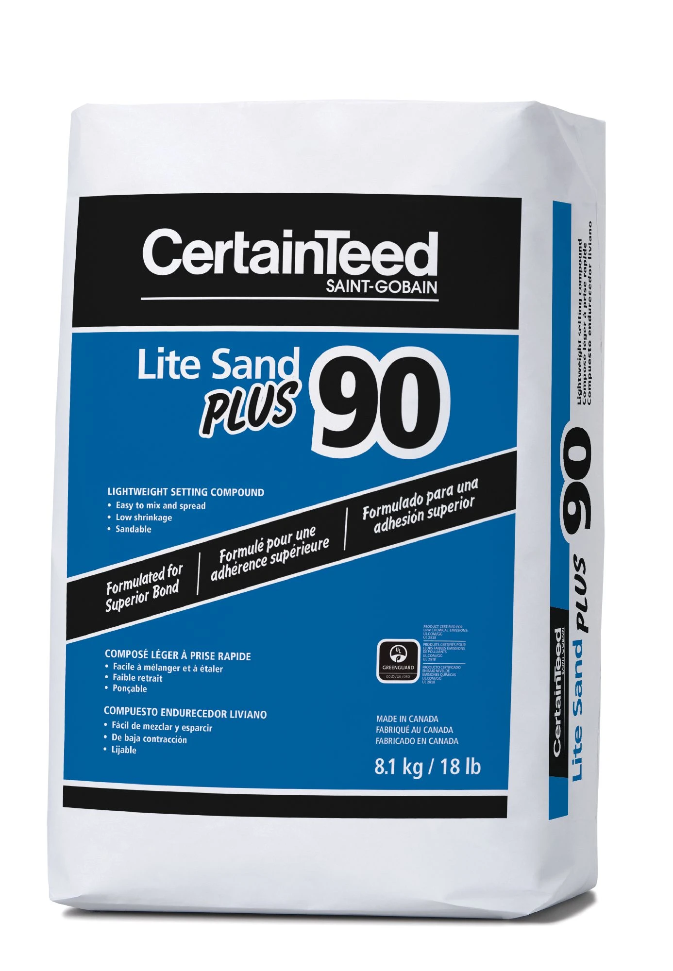 CertainTeed Lite Sand Setting Compounds are lightweight, sandable, chemically setting powders used to pre-fill joints, embed joint tape and conceal joints, fasteners and trim accessories on gypsum wallboard. They can also be used for interior patching and repair. They are ideal for heavy fills because they are specially formulated to harden with very little shrinkage in a prescribed time frame. Offered in 20, 45 and 90 minutes setting times.