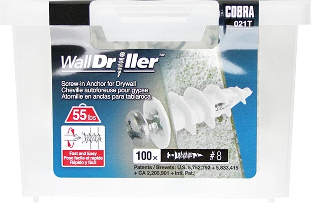 The WallDriller® is designed to offer the maximum holding power in drywall material. Its fine centered point helps guide the anchor into the wall with flawless precision. A sharp profile thread cuts deeply into the hole without damaging the drywall, ensuring maximum holding power and stability. The sharp cutting edge reduces the force required to cut the material, making it a self-drilling anchor without pre-drilling.