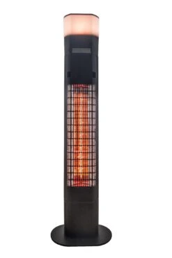 Tall and elegant patio heater, perfect for use anywhere and directs the heat exactly where you need it; Provides the maximum 1500 Watts of instantaneous radiant heat; IP55 certified weatherproof rating makes this safe for use outdoors, even in wet or rainy environments. No need to put it away every day; LED Light on the top provides subtle light and can change colors using the remote control to suit your mood; With tip-over and overheating protection, this heater is safe to use around children and pets.
