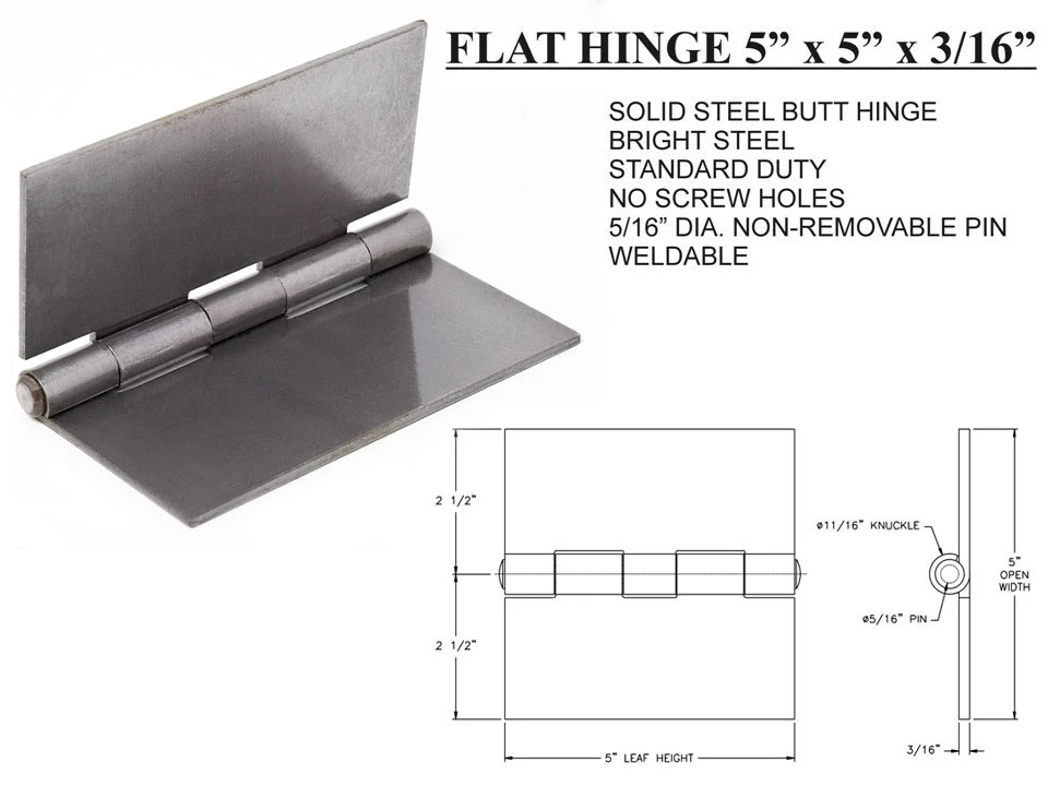 FLAT HINGE 5″X5″ WELD ON 3/16″