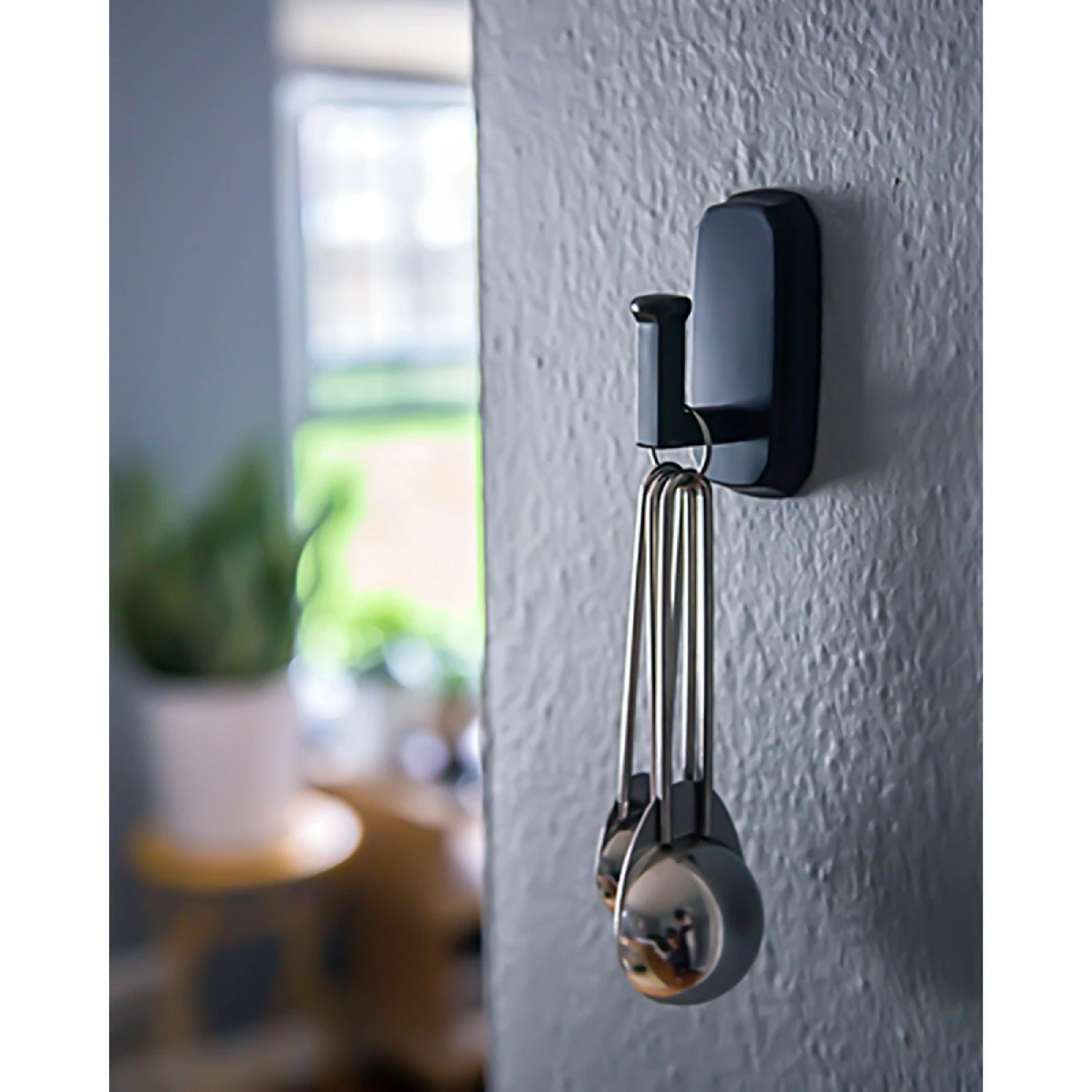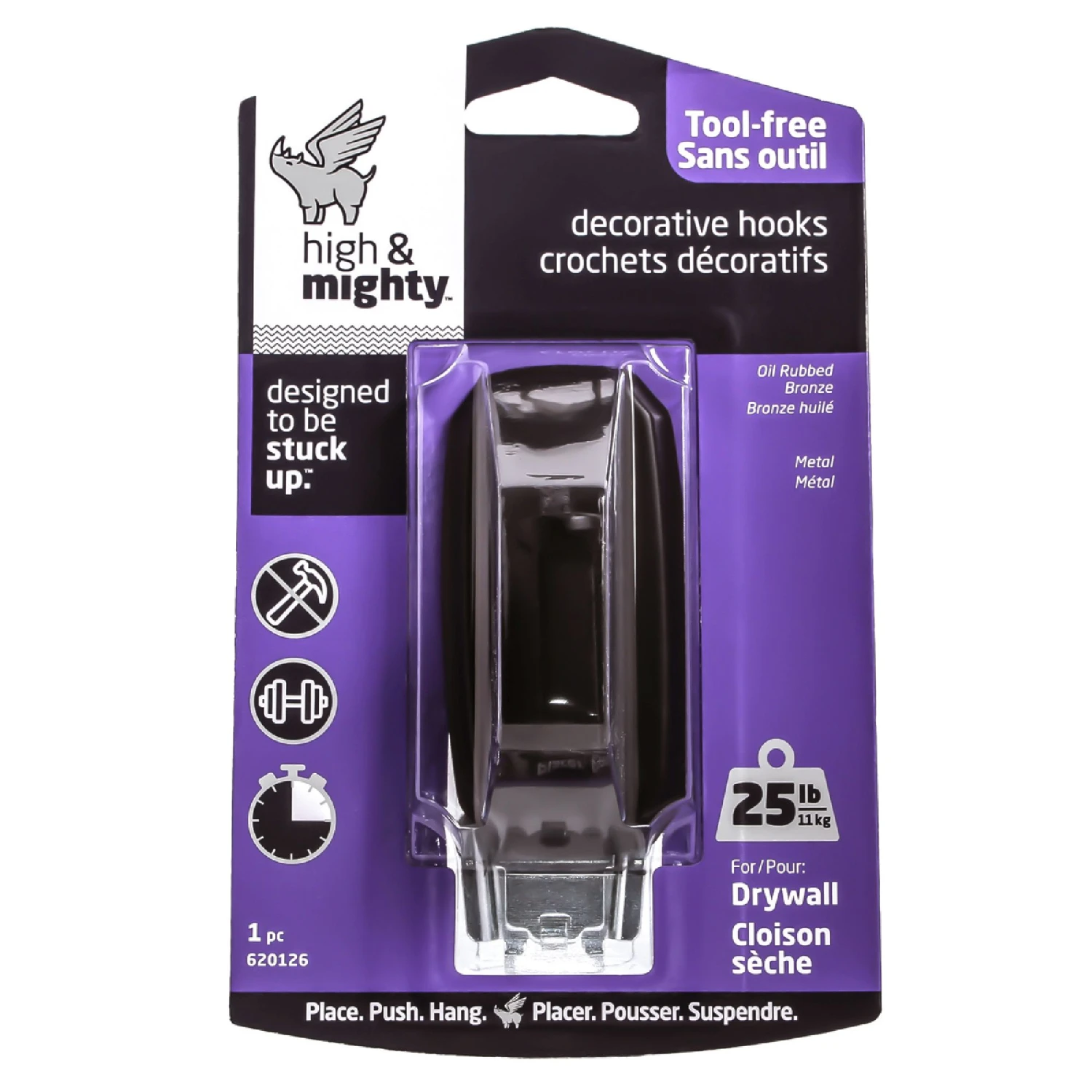 – This hook is great for tool free hanging- It has 3 steps for easy installation- It holds up to 20 lbs- It has minimal wall impact so it will not damage walls- It is designed to be used in dryawall