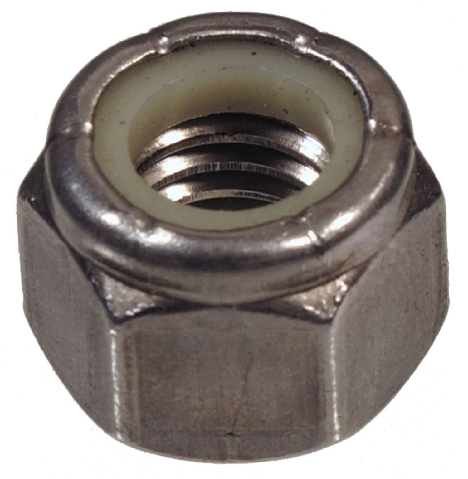 Nylon insert lock nuts are used where heavy vibration is found and when a tight frictional fit is needed. This nut must be installed and removed with hand tools._x000d_