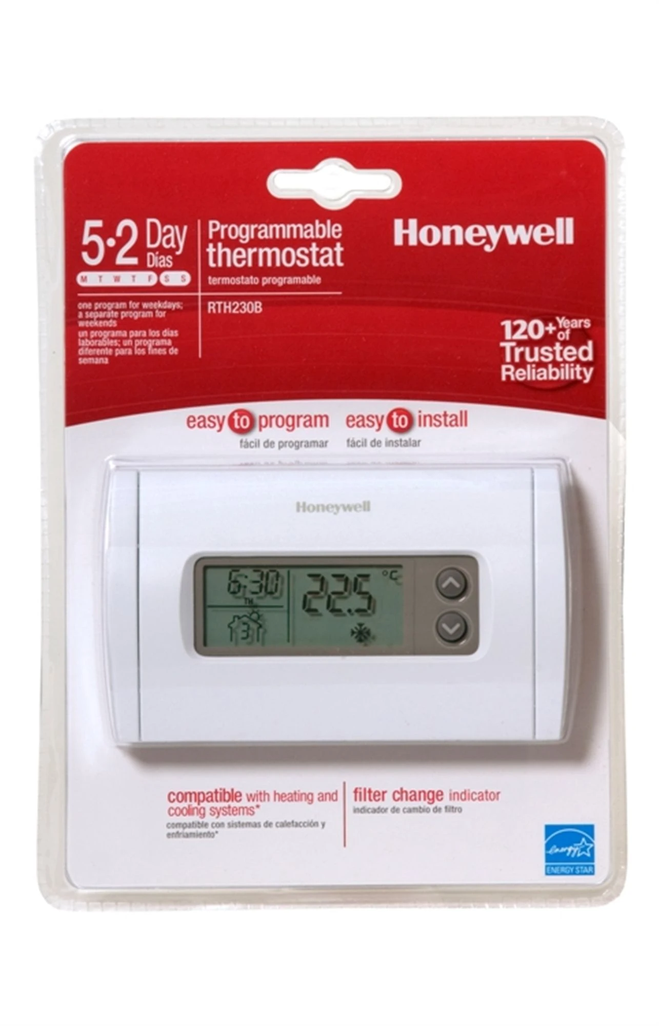 Our 5-2 Day Programmable Thermostat is in tune with the way you live. You can program it for weekdays and weekends, plus up to four periods per day. Features such as the backlit display make it easy to use, while precision temperature control maximizes your home’s comfort.