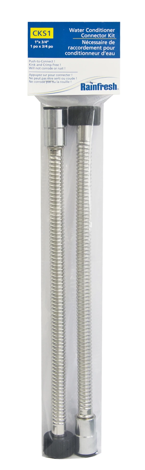 – Hooks up a water softener and/or conditioner with 1″ NPT connections to 3/4″ copper or PEX pipe
