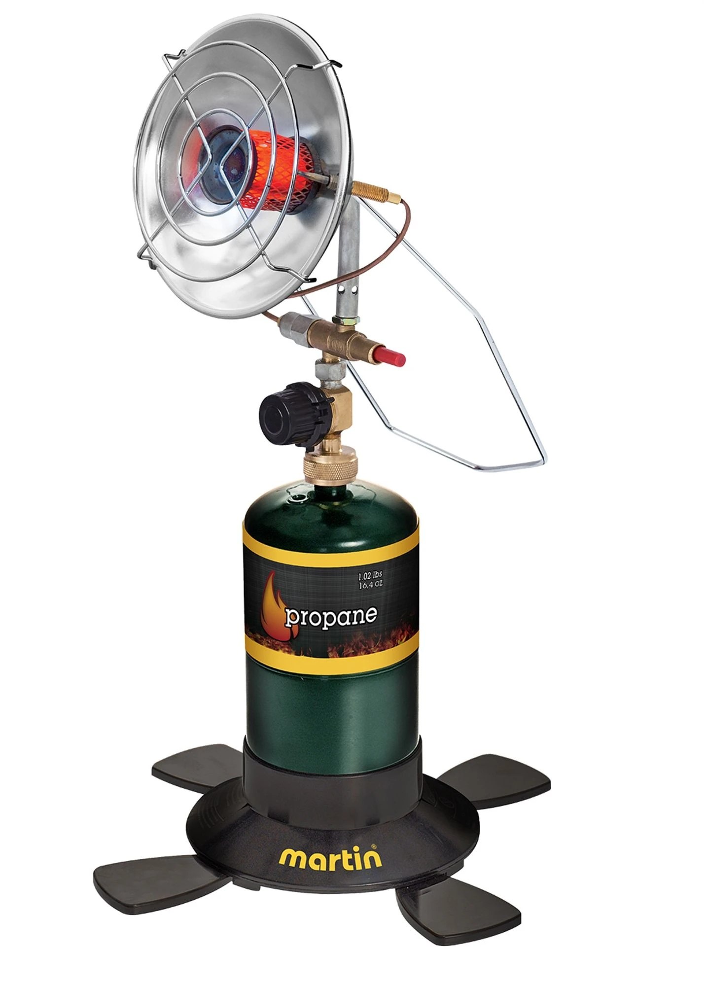 OPERATES ON A 16.4 OZ. DISPOSABLE PROPANE CYLINDER.