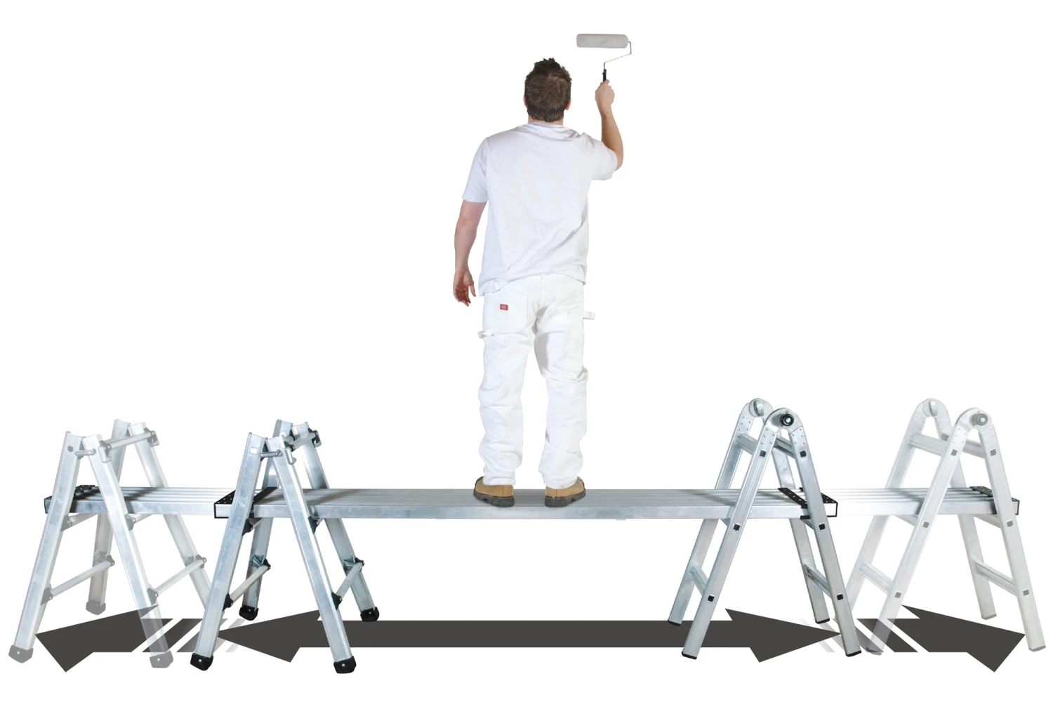 ALUMINUM CONSTRUCTIONEXTENDS FROM 8 TO 13’PLANK IS 12″ WIDELOAD CAPACITY OF 250LBSWEIGHT: 41 LBSWORKS WELL WITH METALTECH TELESCOPIC/ARTICULATING LADDERSMEETS ANSI, CSA AND OSHA STANDARD