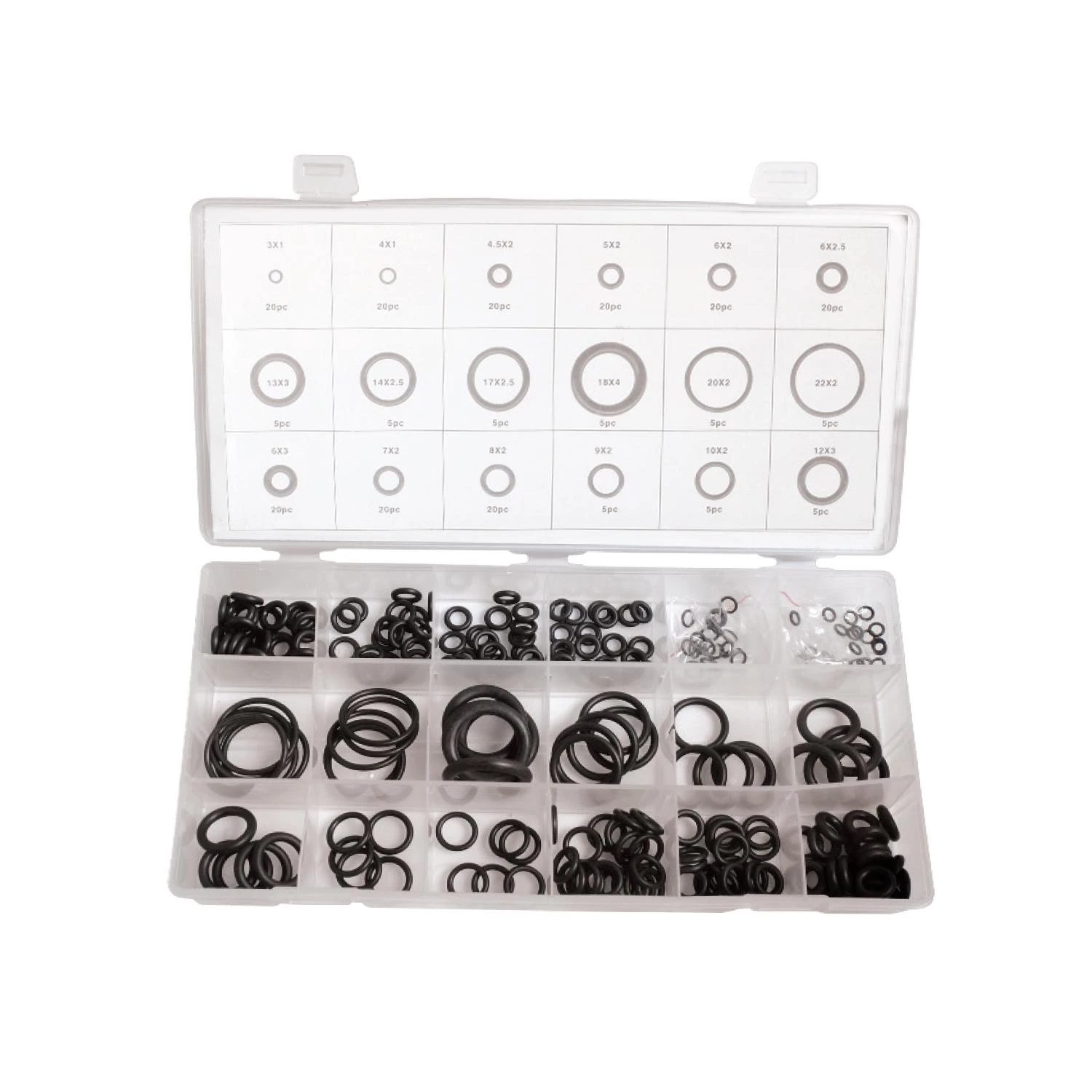 This assorted nitrile o-ring kit contains the following common SAE sizes: