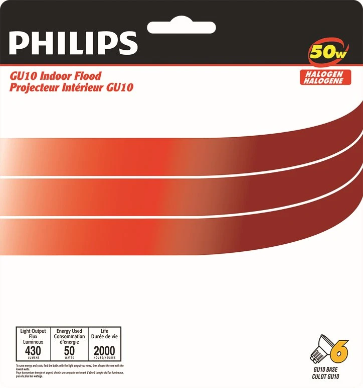 Philips Halogen 50W GU10 Flood Light Bulb 6 Pack