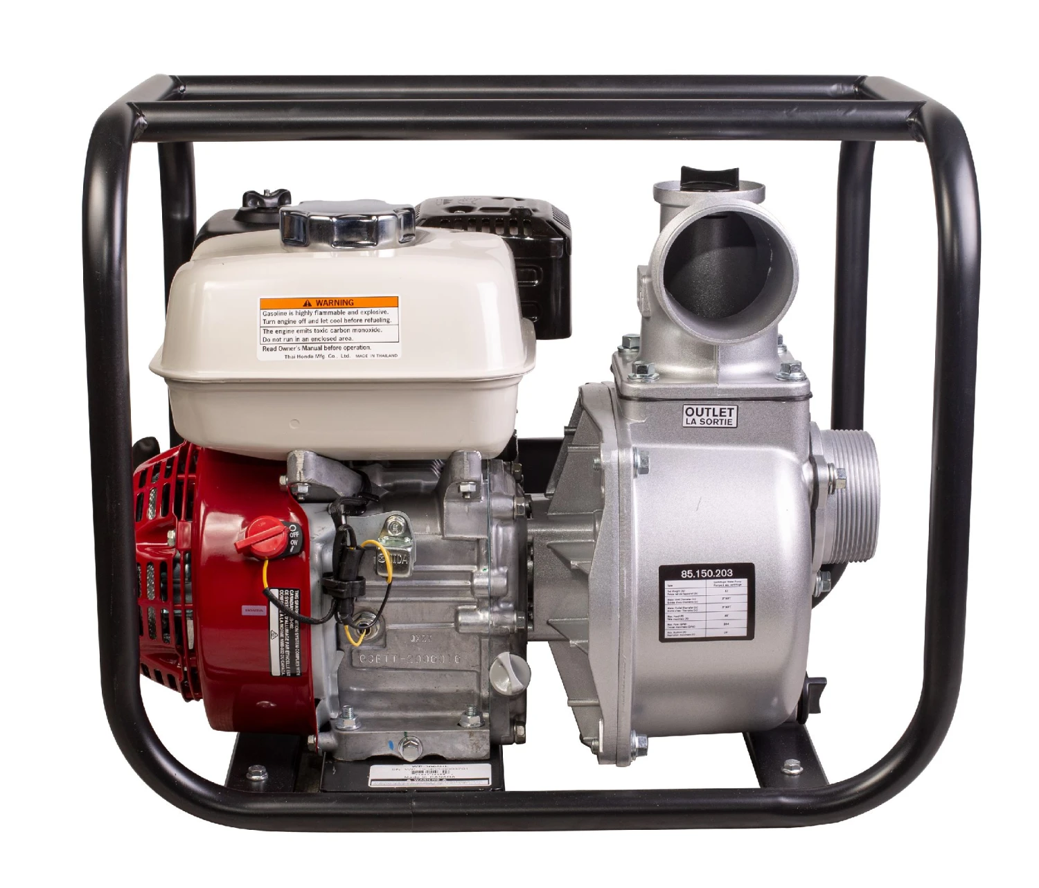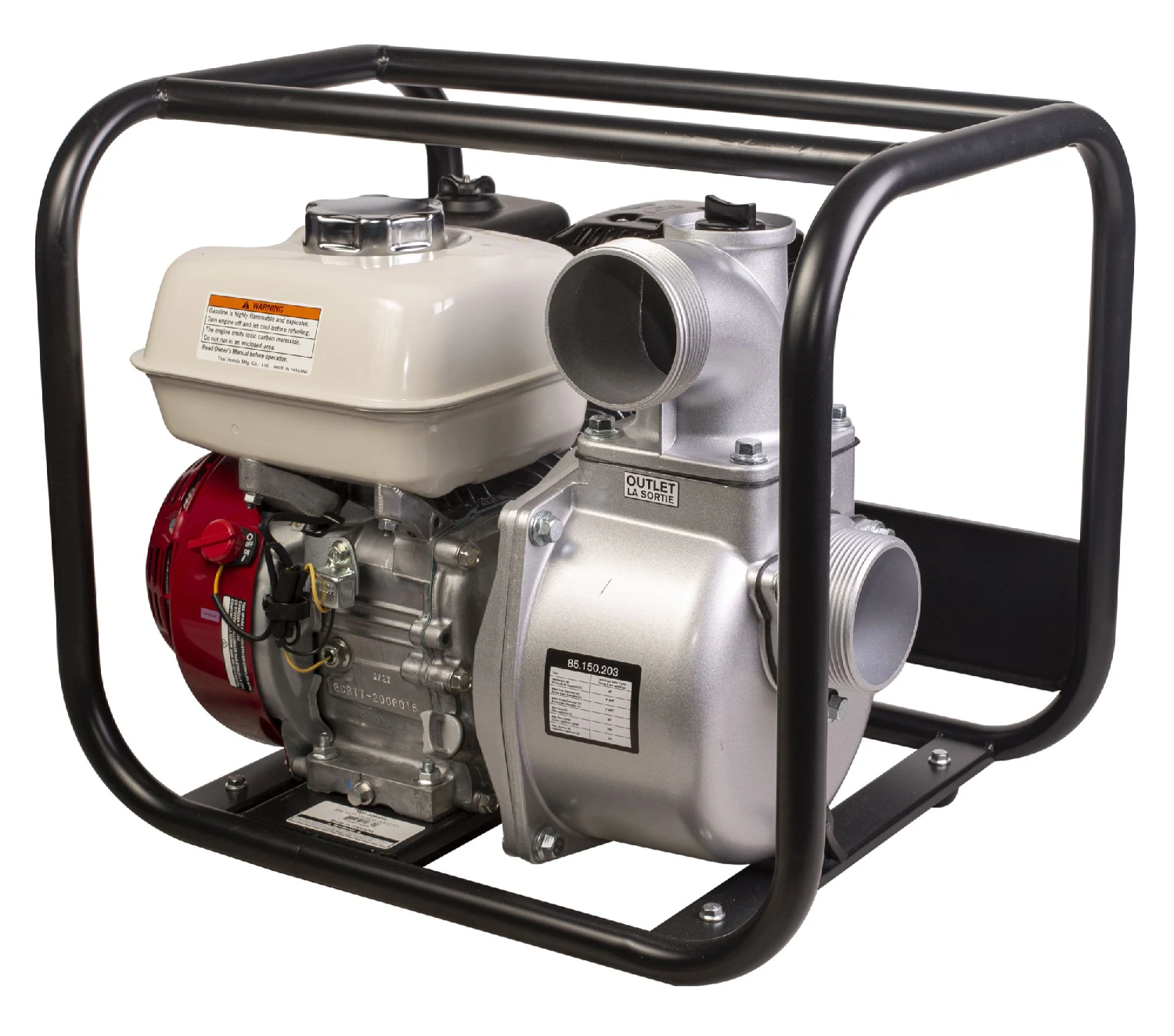 This BE 3″ water pump comes with a Honda GX200 engine. It is a perfect option for moving standing clean water from one place to another. It features an aluminum housing to reduce the weight, so it is easier to move around to where you need it. – 264 GPM – 35 PSI – 85′ total lift – Low oil shutdown – 67 lbs