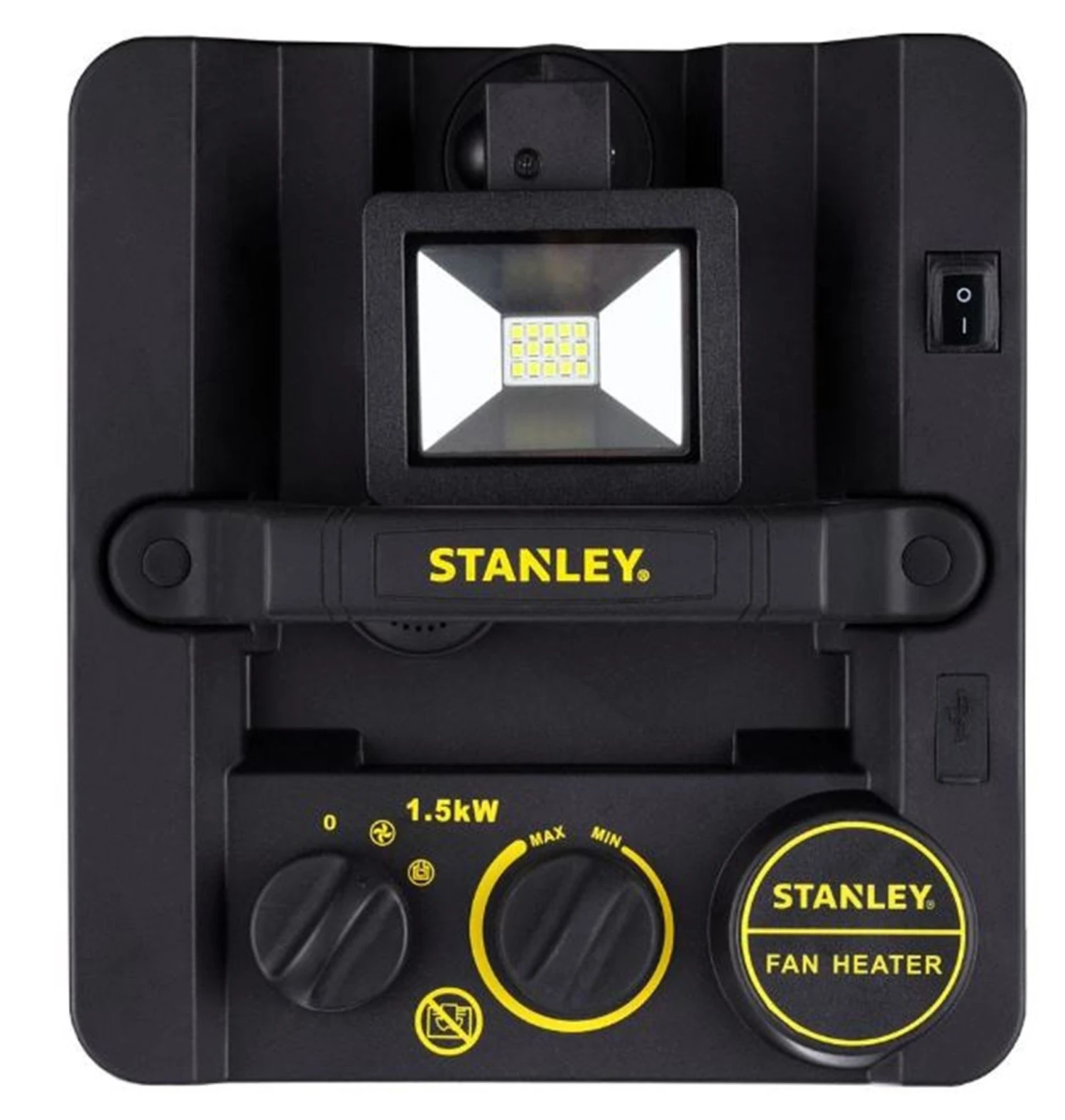 The Stanley electric heater brings heat and light where you need it most, regardless of application. Ideal for workbenches, workshops, sheds, barns or anywhere in the home, the Stanley electric heater is rugged and portable. The Stanley electric heater is built of strong, long-lasting steel outer shell and features an on-demand adjustable LED light and USB charging port.